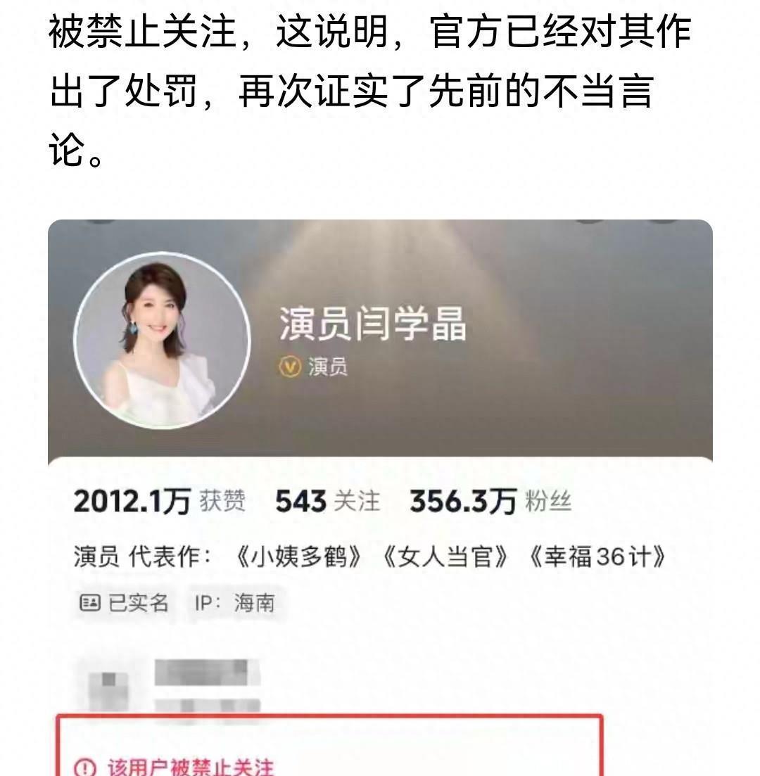闫学晶账号风波持续发酵:从"哭穷"争议到身份危机的多维度审视事件回顾:公众人物的"分寸感"失守1月10日,演员闫学晶因社交账号被多平台禁关注引发热议。